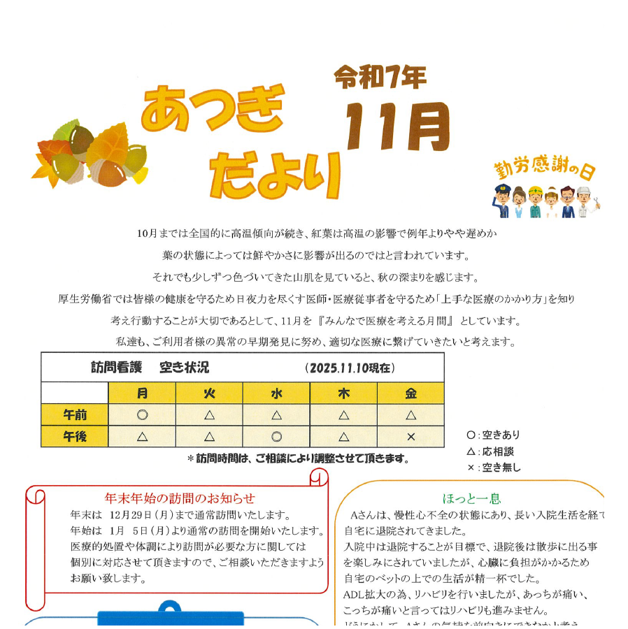 私達も、ご利用者様の異常の早期発見に努め、適切な医療に繋げていきたいと考えます。